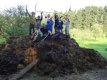 Trois fois par an, nous devons vider le fumier qui s’est accumulé dans la bergerie, l’occasion d’organiser un chantier et de passer un chouette moment ensemble. Ce chantier nous rend un énoooorme service car nous ne sommes pas mécanisés et qu’il faut donc pas mal d’huile de bras pour évacuer tout ce fumier en une journée pour que les brebis puissent y dormir au chaud la nuit suivante !