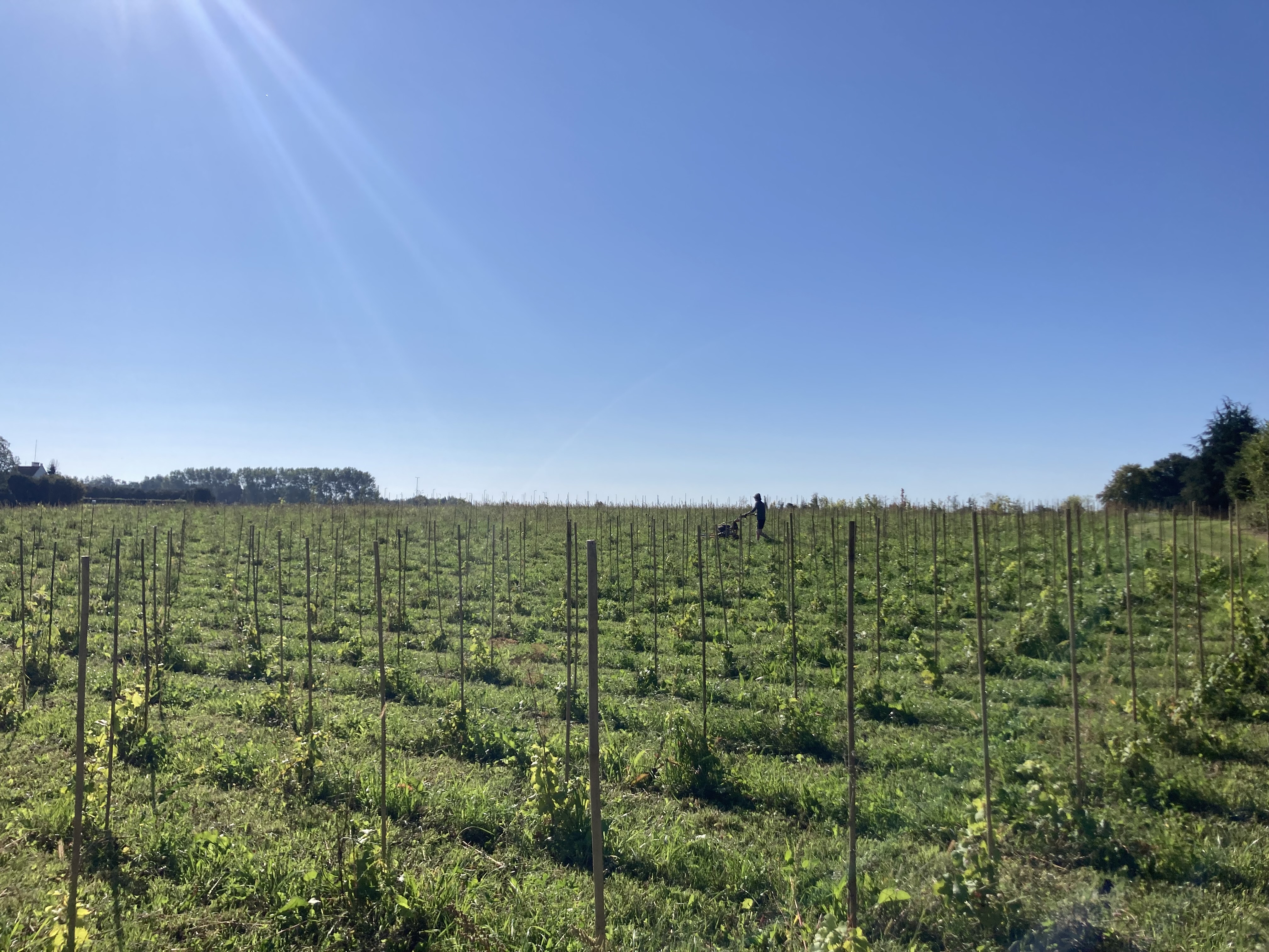 Les Terres de la Bruyère sont située à Haut-Ittre et accueillent 5 fermes distinctes : La vigne est belle, la Ferme trop tard, le Jardin des Saules, la Potironnerie et Agrécolibre. Une terre partagée où on se soutient, on s’entraide, on trouve des solutions agro-écologiques et matérielles. Une terre qui est sortie de la spéculation grâce à Terre en vue, une association qui achète des terres agricoles pour qu’elles redeviennent citoyennes et les mettre à disposition des agriculteurs.ices. Une terre sur laquelle on a planté des vignes. 22 cépages éparpillés et mélangés, dans un certain ordre caché. Et où des arbres vont petit à petit venir accompagner les lianes.