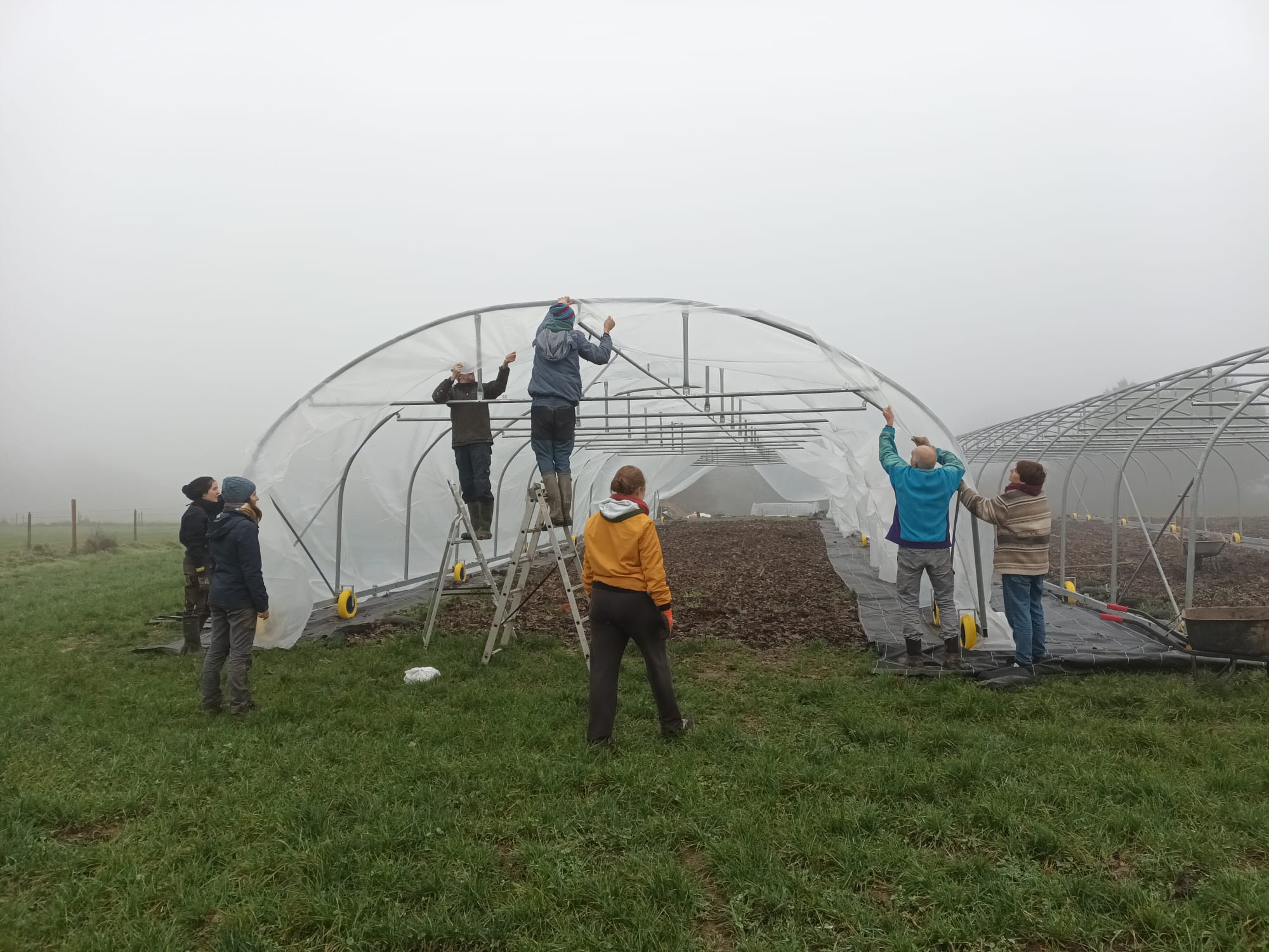 Il s’agira de déployer la bâche de la serre et de l’attacher avec des cordes, un travail relativement simple et amusant, mais nécessitant d’être à plusieurs :-)